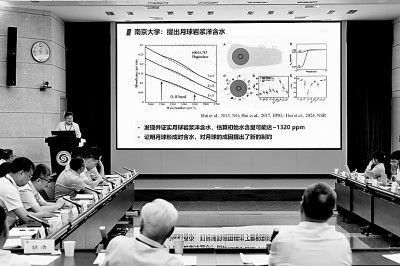 中国科学院嫦娥六号月球样品系列研究成果中四项重磅研究发表于国际学术期刊《自然》。图为惠鹤九教授介绍南京大学参与合作情况。新华社发