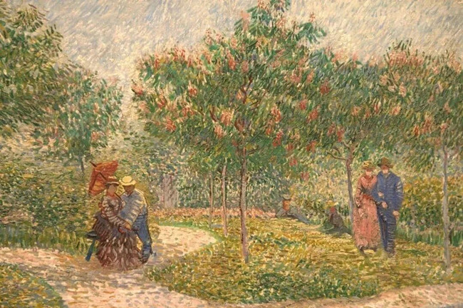 来到了巴黎的梵高,终于接触到了绘画,而当时的点彩派大师修拉正是他们的邻居。梵高向修拉和其他优秀艺术家学习了油画技法,真正开始了油画创作,梵高终于找到了能够救赎自己的道路。
